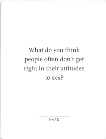 As a bonus, the cards are graded according to how probing they are (Easy, Medium and Hard) so that you can playfully match the discussion with the flow of an evening.